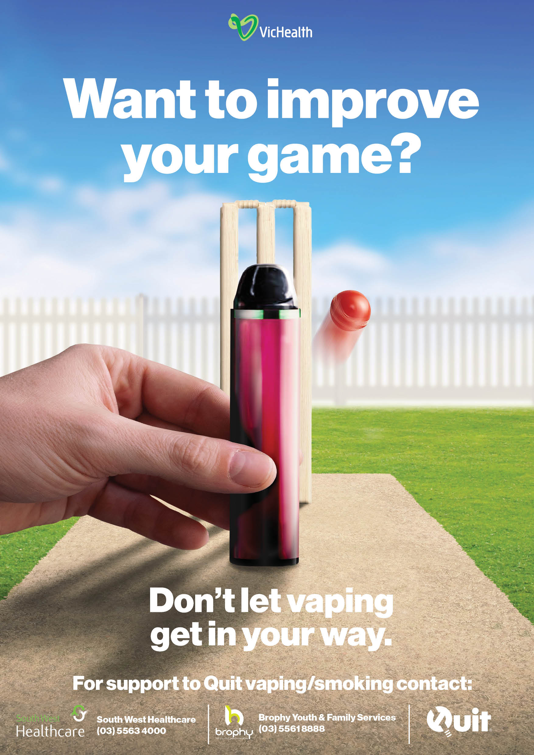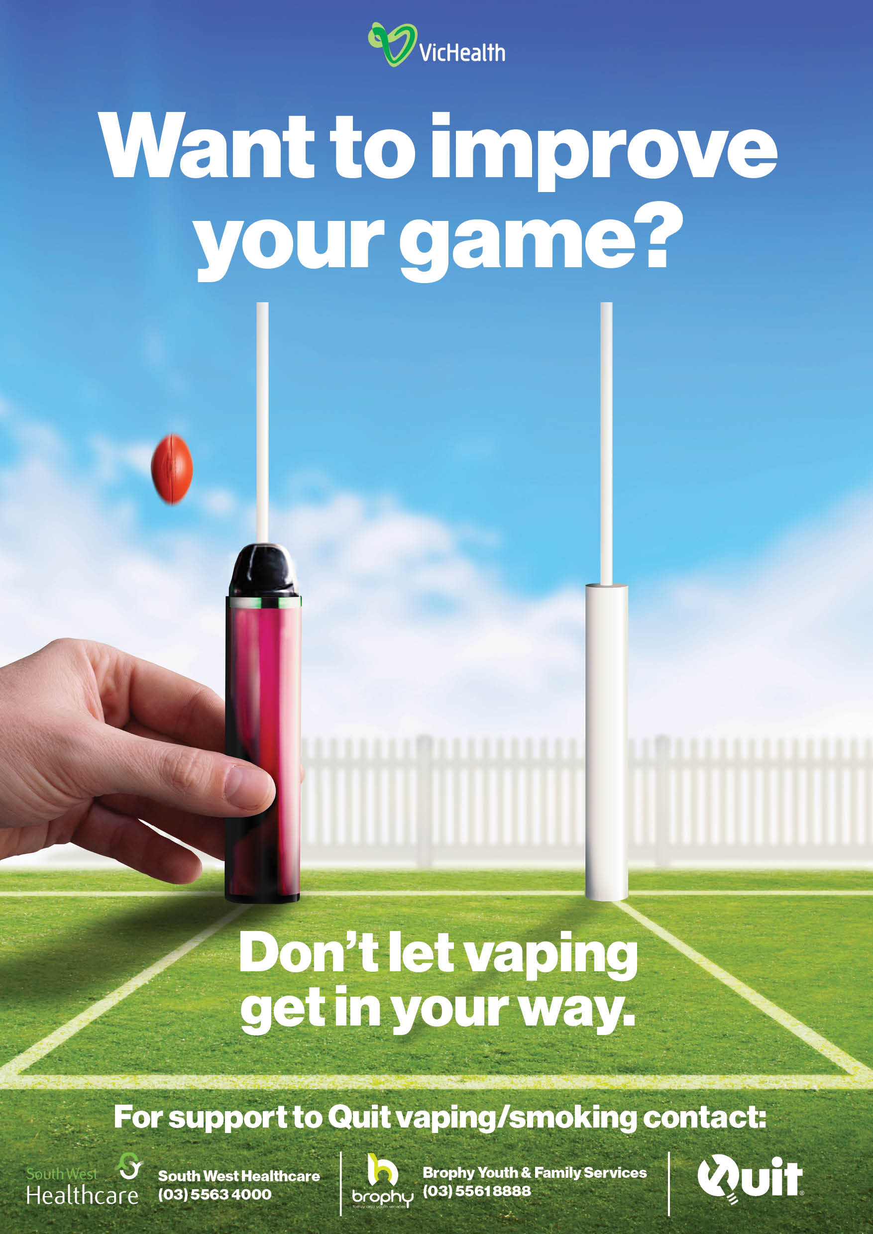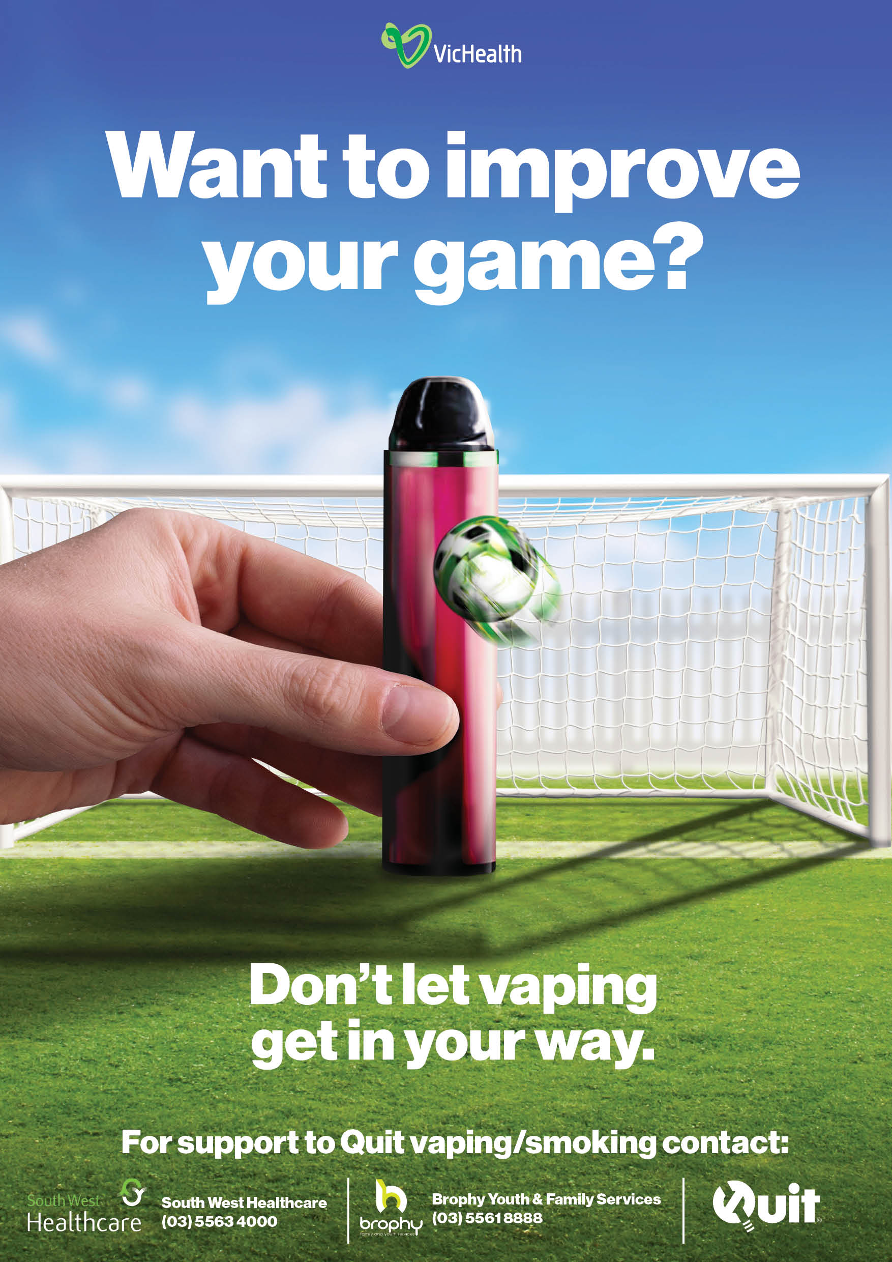 The campaign message — highlighting the impact of vaping on sporting performance — informed the design of anti-vaping signage now installed across 13 local sporting facilities, along with bus advertising featuring multiple sports and the tagline: “Don’t let vaping get in your way.”