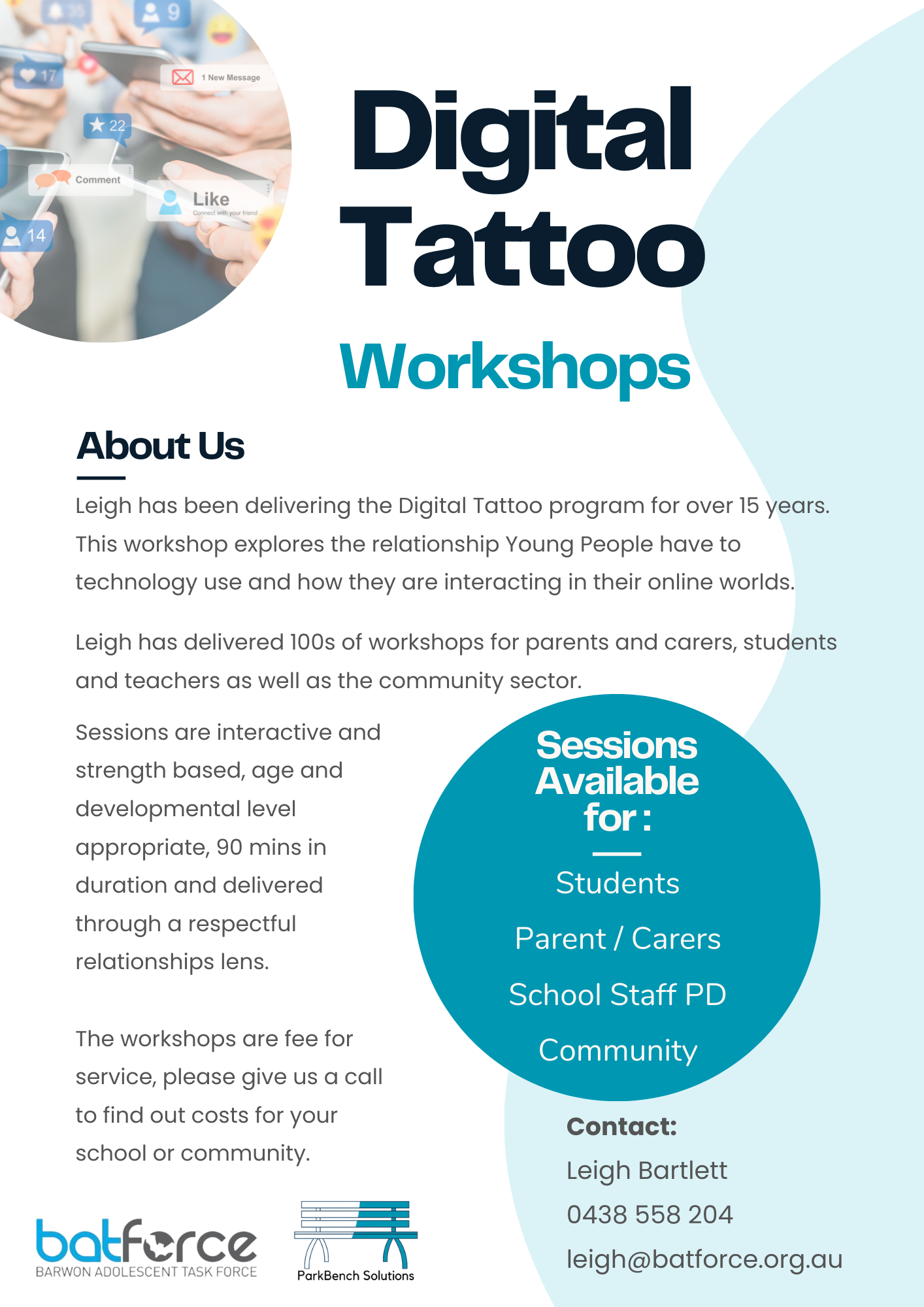 BATForce has been delivering workshops to students, teachers and families across the region since 2008 with a particular focus on strengthening school-family partnerships.