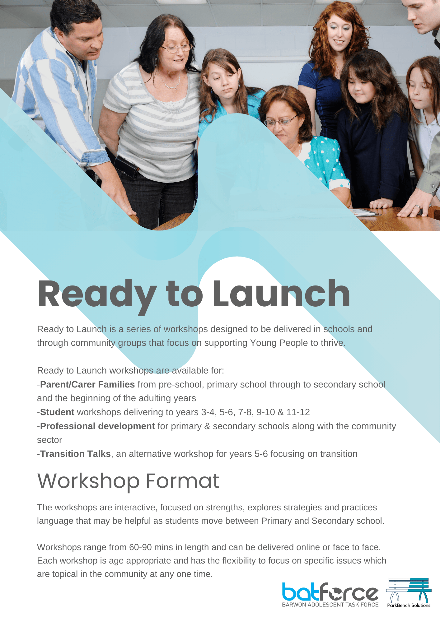 The Ready to Launch workshops are a series of workshops that focus on supporting young people to thrive. Each workshop is interactive, strength focused and has practical strategies that can be implemented straight away.